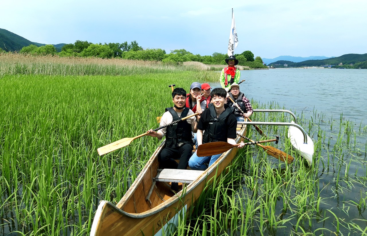 강바람을 맞으며 노를 젓는 춘천 대표 카누 코스